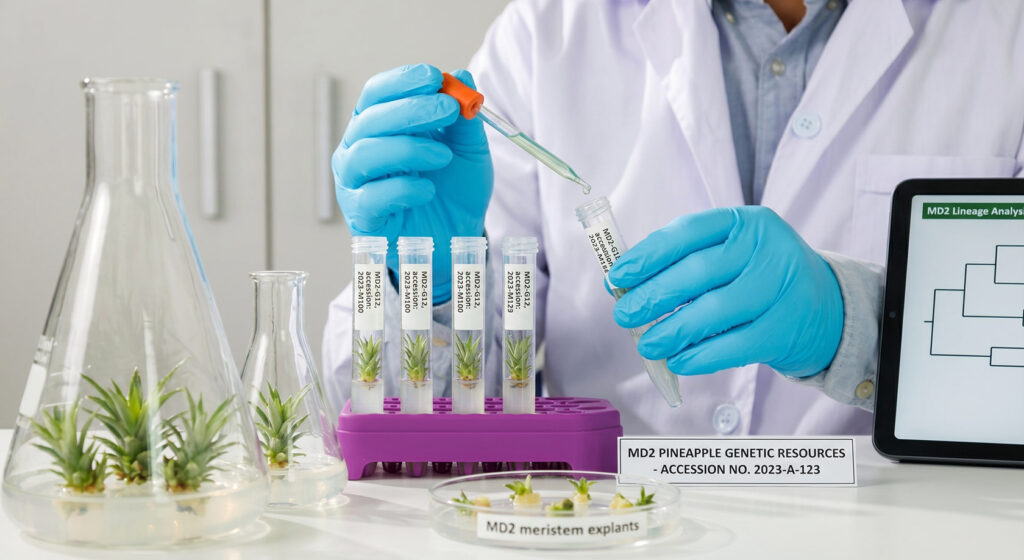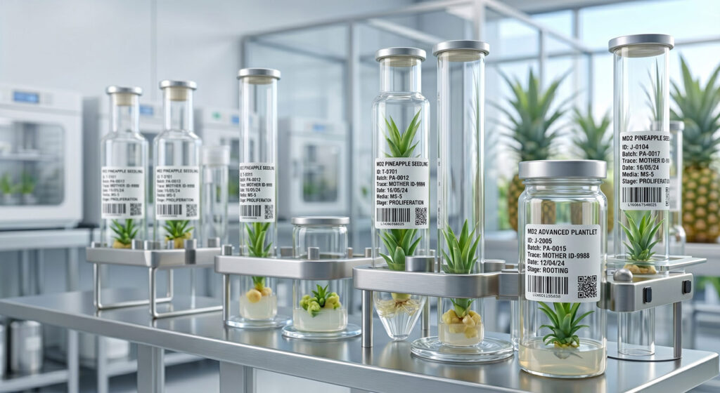 - KHÔNG lai tạp giống: 100% nguồn giống MD2 được duy trì gen thuần chủng từ phòng Lab, đảm bảo chất lượng đồng nhất trên quy mô lớn.